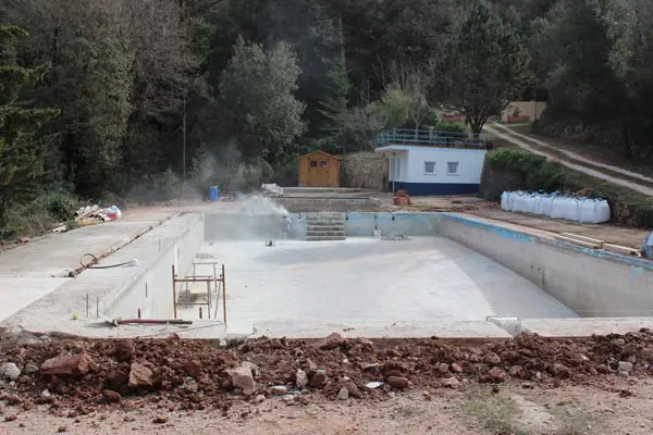 Het indrukwekkende zwembad in volle opbouw...