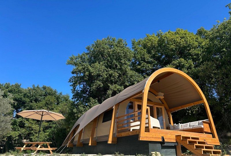 Te midden van olijfbomen, wijnranken en geurige lavendel staan de luxe glamping tenten. Ontwaak elke ochtend in alle rust en geniet van een adembenemend uitzicht op de bergen.