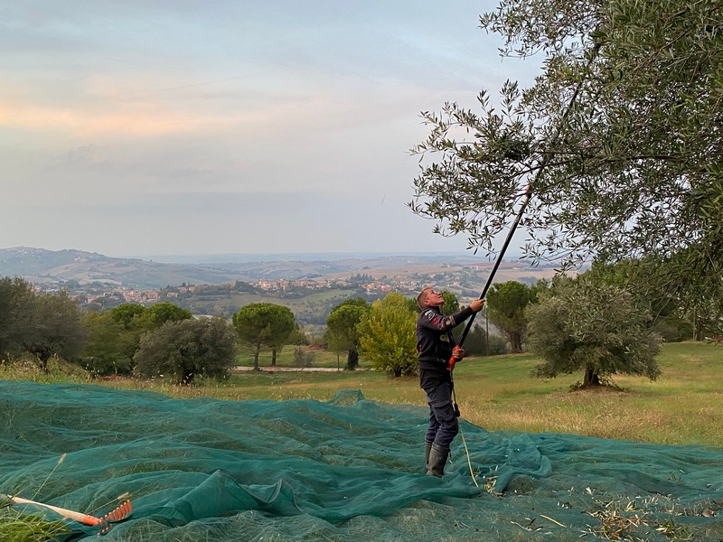De verblijven maken deel uit van hun Azienda Agricola, een landbouwbedrijf waar ze Luzerne verbouwen. Dit eiwitrijke gewas, met zijn kenmerkende paarse bloemetjes, speelt een belangrijke rol in de productie. In het najaar vind je Dries & Jasmine tussen de olijfbomen, waar ze een olijfolie van topkwaliteit produceren. Daarnaast kun je hun paarden in de weides rond het huis zien, die het landschap en de sfeer van de boerderij compleet maken.