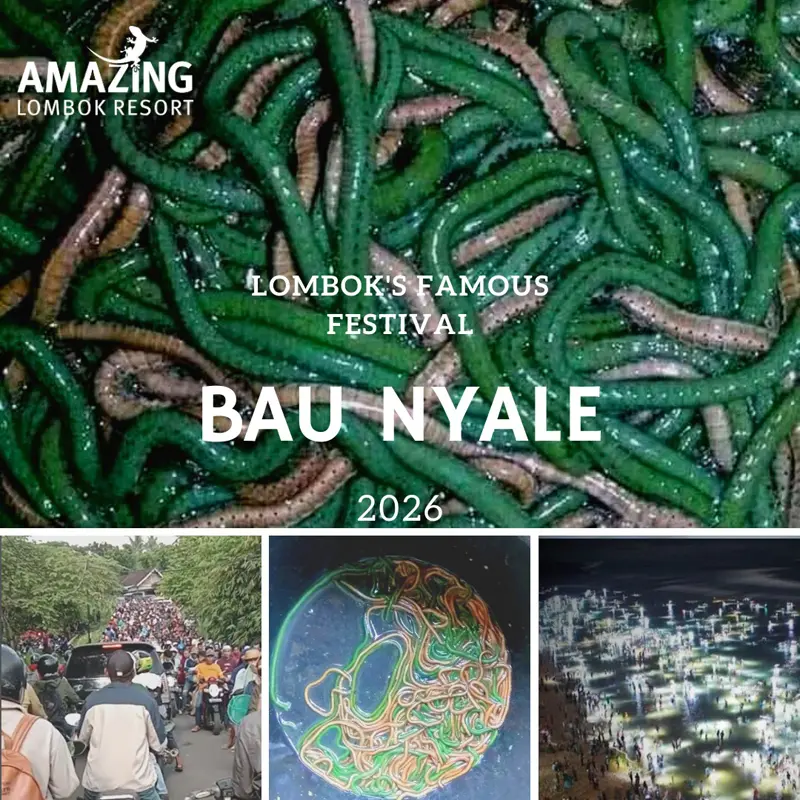 En zo verschijnen er één keer per jaar tienduizenden “nyale”, kleurrijke zeewormen waarvan de lokale bevolking gelooft dat ze geluk en vruchtbaarheid brengen. Die dag komen duizenden Indonesiërs naar de stranden in het zuiden van Lombok, om bij zonsopgang en laagwater deze lekkernij te vangen. Een unieke gebeurtenis, waarrond nog steeds veel traditie en bijgeloof hangt.
