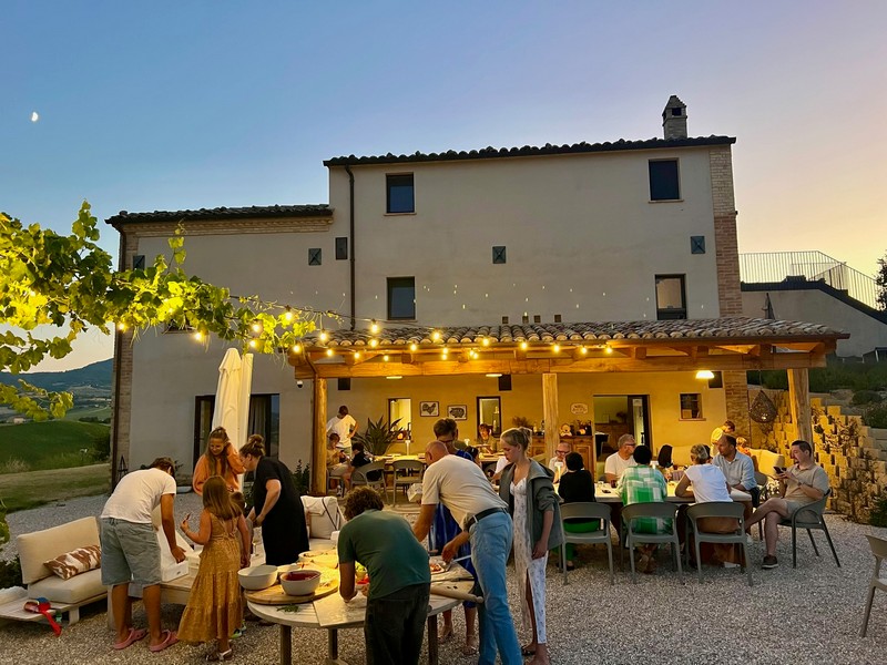 Welkom in de nieuwe Agriturismo Brezza di Sera in Le Marche (Italië), die zich elegant uitstrekt op haar eigen heuvel. Enerzijds is er het hoofdgebouw met drie luxe appartementen, en anderzijds 200 meter verder drie luxe glamping tenten op 360m hoogte en een 270° uitzicht.