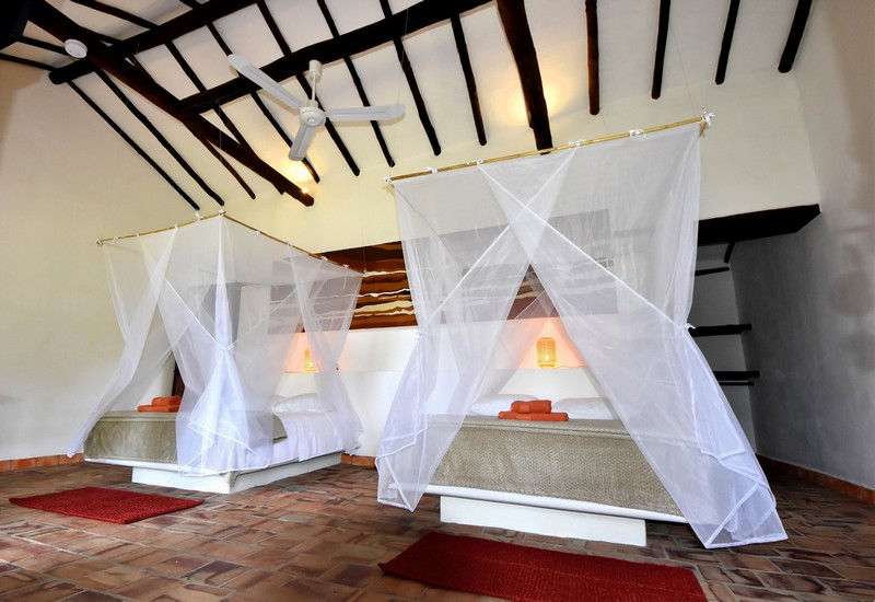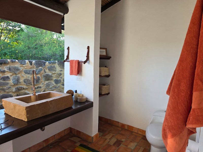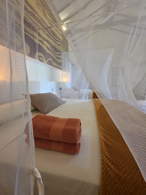 De B&B beschikt over 3 grote kamers, ideaal voor koppels, vrienden of families die comfort en ruimte waarderen. Elke kamer is ingericht met twee queensize bedden, hoogwaardige matrassen en een warme, natuurlijke stijl. Het absolute hoogtepunt van elke kamer is de buitenbadkamer: douchen in open lucht, omringd door natuur, is een ervaring die gasten als uniek en onvergetelijk beschrijven. Grote ramen en private terrassen met hangmatten zorgen voor licht, lucht en een sterke connectie met de omgeving.