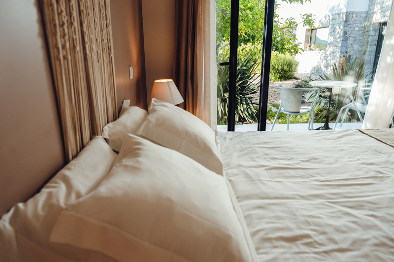 Er zijn 4 'sunset rooms' op de eerste verdieping, met zicht op de vallei. Gezinnen kunnen 2 kamers naast elkaar nemen, met een aparte toegang. In de tuin zijn er 3 'garden rooms' en 1 suite (met aparte slaapkamer). Je duikt zo vanuit je bed het zwembad in.