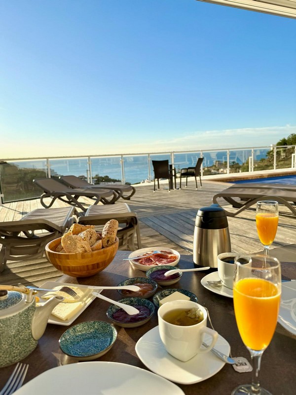 Het royaal ontbijt wordt geserveerd op zwembadniveau, aan jullie de keuze om de trappen of de buitenlift te gebruiken.