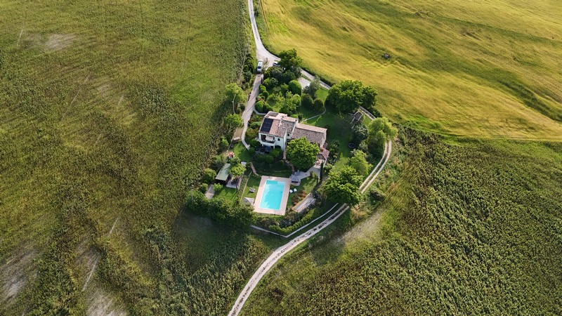 Het huis bevindt zich aan de rand van San Pietro di Arcevia, dat centraal gelegen is tussen de Adriatische stranden (25 km) en de Apennijnen (30 km), en is bereikbaar via een 600 meter lange onverharde weg (strada bianca).