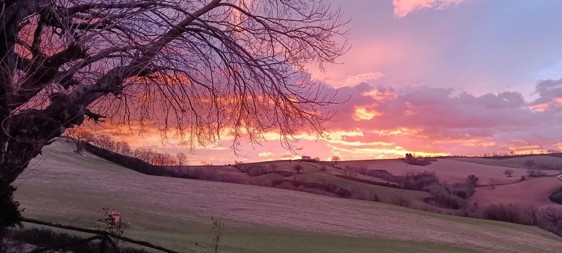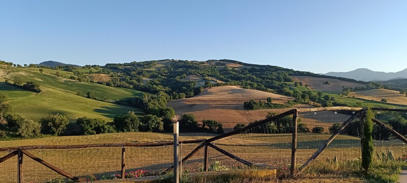 Het huis is rustig gelegen in een glooiend landschap en omgeven door landerijen met fantastisch uitzicht op Monte Catria.