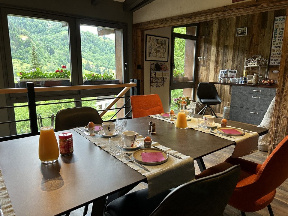 In de gezellige eetzaal wordt 's ochtends een uitgebreid ontbijt geserveerd, en 's avonds kun je — wanneer beschikbaar — aanschuiven voor de table d'hôtes. Een warme, huiselijke plek waar je kunt ontspannen en genieten van alles wat de Vogezen te bieden hebben.