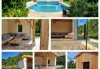 Het is zalig vertoeven in of rond het grote, zuid-west georiënteerde zwembad (6m*12m). Er zijn voldoende ligstoelen aanwezig op het terras en grasveld rond het zwembad. In 2023 werd een poolhouse gebouwd met een grote loungehoek voor heerlijke aperitiefmomenten samen. Vlak ernaast is de buitenkeuken met kruidentuintje en groot terras om gezellig samen te eten.