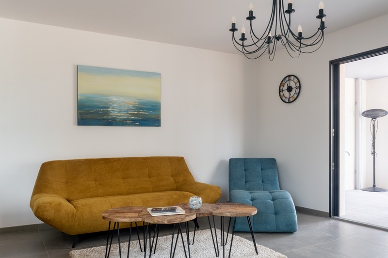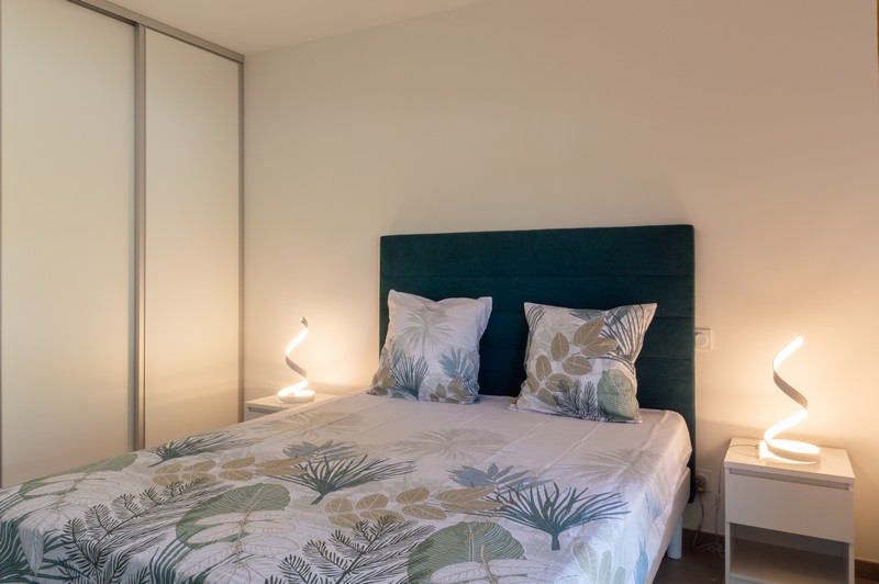 Het interieur is modern en met alle comfort. De leefruimte en twee slaapkamers zijn uitgerust met individuele airconditioning. In de open keuken beschik je over een vaatwasser, oven, magnetron en ruime koelkast met (kleine) diepvriezer. In de badkamer vind je een bad/douche combinatie. Wasmachine, Led-televisie, dvd-speler en Wifi behoren uiteraard ook tot de standaard.