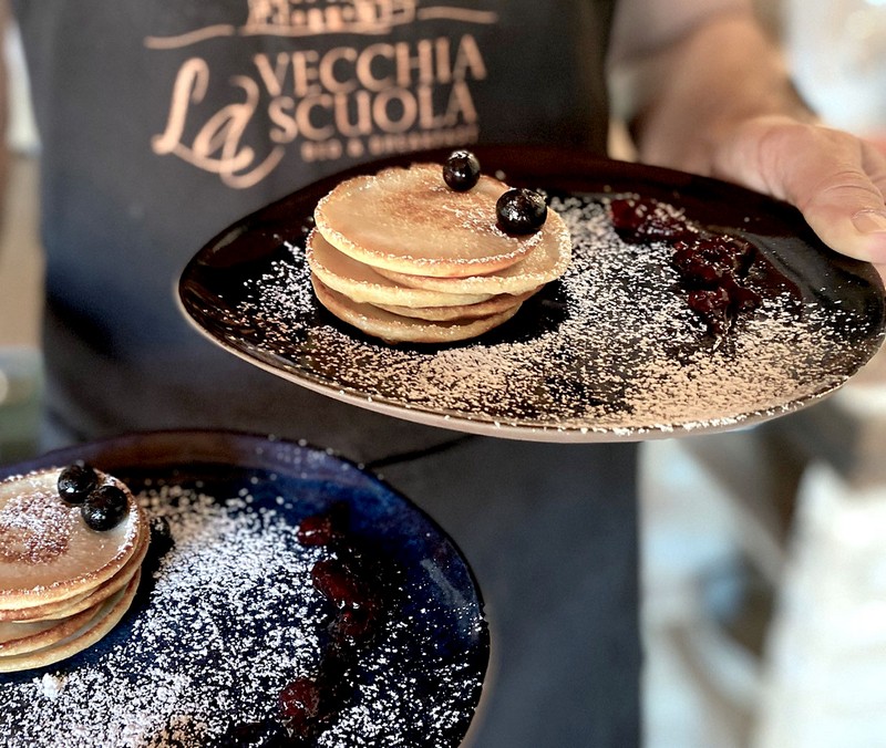 La Vecchia Scuola telt vijf kamers, een zwembad met uitzicht over de heuvels, een olijfgaard met 120 bomen waarvan Gonnie & Jurgen hun eigen olijfolie maken, en een volledig ingerichte buitenkeuken. Elke ochtend wordt een vers bereid driegangen ontbijt geserveerd op het buitenterras.