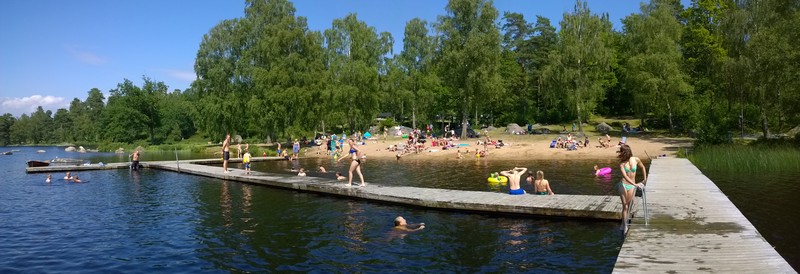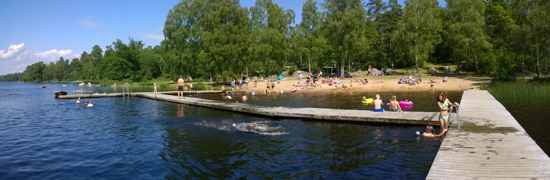 Heerlijke zandstranden omgeven de camping en huisjes. Hier vind je het warmste zwemwater in Blekinge. Bovendien bijzonder schoon zwemwater. Je kunt het bijna zo drinken. Sterker nog, de gehele gemeente drinkt het, aangezien dit meer de gehele gemeente voorziet van drinkwater. Het hoofdstrand op de camping is bijzonder kindvriendelijk en afgebakend zodat kleine kinderen veilig kunnen zwemmen en spelen in het water. Op de camping kun je ondermeer roeiboten, kayaks, kano's en paddle-boards huren voor een heerlijk tochtje op het water. In dit deel van Zweden schijnt de zon het meest van heel Zweden, met ruim 20% meer zonuren dan in België & Nederland en nauwelijks 50% aan neerslag.