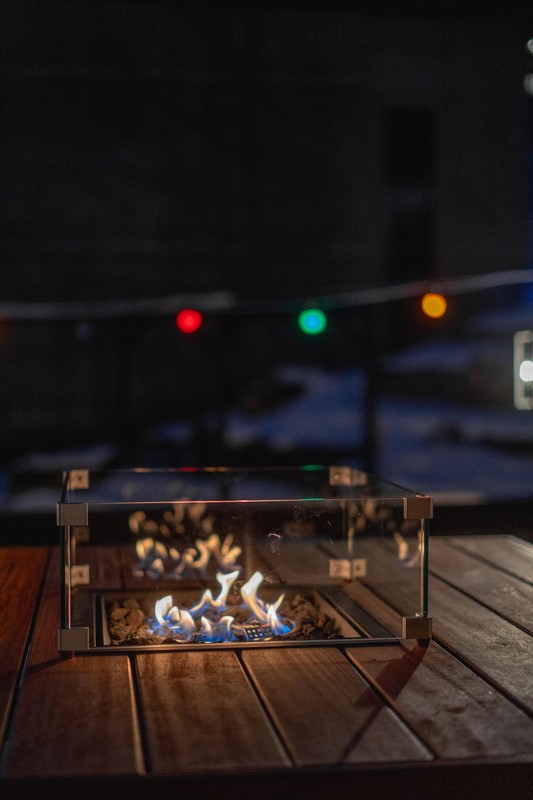- Een panoramisch terras met vuurtafels en een adembenemend uitzicht