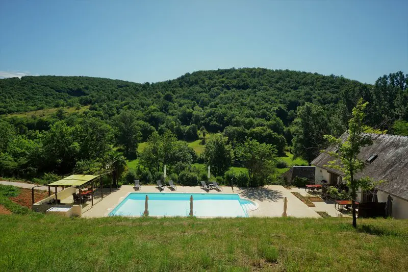 De niet omsloten tuin is 1 ha groot. Er is een zwembad van 12 op 6, omgeven door een groot zonneterras met uitzicht op de groene vallei van de Borrèze, een zijriviertje van de Dordogne.
