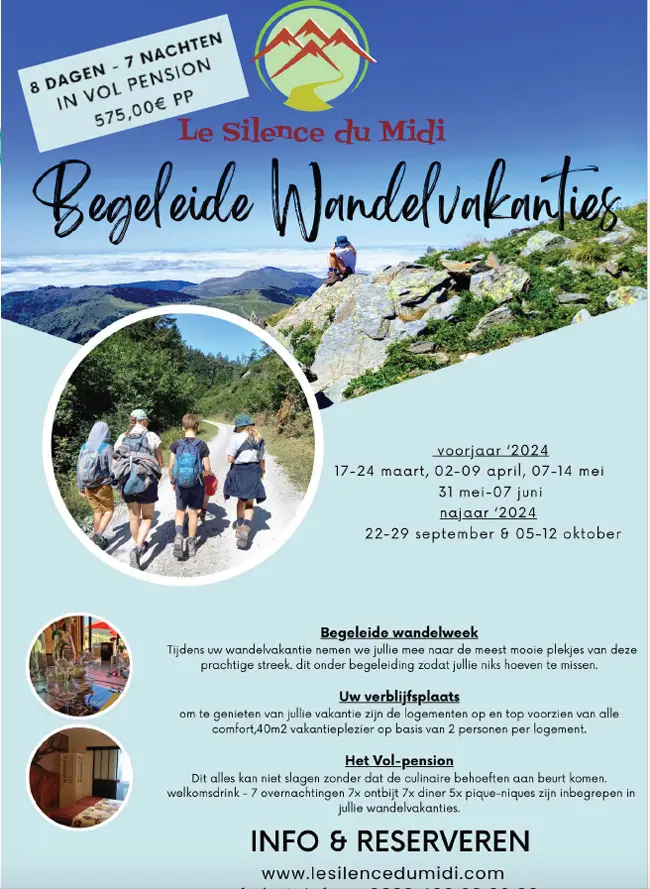 Tijdens het voor- en najaar 2024 biedt Le Silence du Midi begeleide wandelvakanties aan, tegen een zeer mooi tarief.