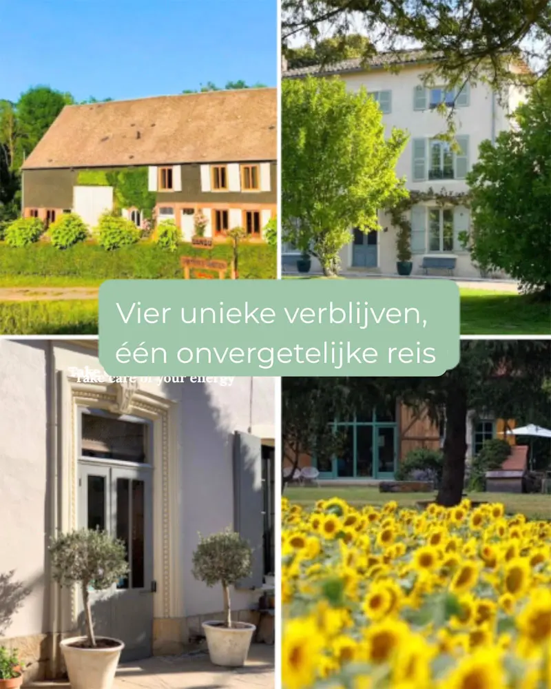 Samen met drie andere chambres d’hôtes heeft La Maison du Cerf een bijzondere rondreis ontwikkeld door het onontdekte Frankrijk. Je verblijft op vier unieke locaties verspreid over noord-, midden-, zuid- en oost-Frankrijk. Elke plek heeft zijn eigen karakter, maar overal staan gastvrijheid, natuur, cultuur en genieten centraal. Het idee is dat je minimaal 3 nachten per locatie verblijft, zodat je echt de tijd hebt om de omgeving te ontdekken. In overleg kan hiervan worden afgeweken.