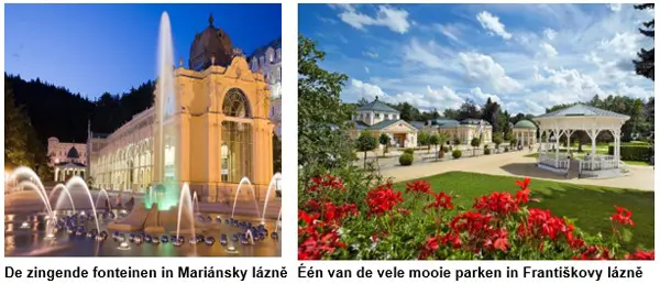 In de regio van KARLOVY VARY bevinden zich nog 2 andere beeldschone kuuroorden : MARIÁNSKÉ LÁZNĚ en FRANTIŠKOVY LÁZNĚ. Alle behoren tot de Boheemse spadriehoek en behoren sinds 2021 tot het werelderfgoed van UNESCO. Elk van deze steden ademen de sfeer uit van mondaine steden van weleer en ze worden bereikt met de auto via de schitterende Boheemse wouden en landschappen. Wandel- en fietsparadijs.