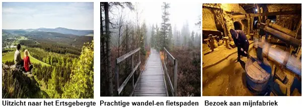 Op een 20 tal minuten rijden van KARLOVY VARY bevindt zich dit prachtige middelgebergte dat tot één van de mooiste van Europa behoort. Het is 150 meter lang en 40 km breed. Het Ertsgebergte heeft van alle Tsjechische bergen de meest bewogen en woelige geschiedenis van politieke gevangenen in de vele goud-, tin- en uraniummijnen maar het is vooral ook een paradijs om te wandelen en de fietsen en zijn vele bezienswaardigheden te ontdekken. KLINOVEC is de hoogste berg van 1244 meter waar een kabelbaan naar toe leidt en BOŽÍ DAR is het hoogste gelegen stadje van Midden-Europa. De vertaling van ´GODSGESCHENK´ spreekt boekdelen en zegt genoeg hoe mooi het hier is!
