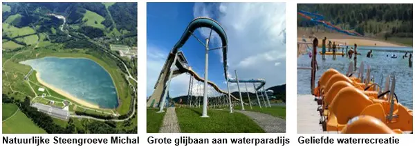 Op warme zomerdagen is het ideaal om nabij KARLOVY VARY het Michal gletsermeer op te zoeken. Het is een natuurlijk waterreservoir. Je vindt er zandstranden, een gigantische waterglijbaan, een peuterbad, een springkasteel, diverse kinderspeelplaatsen en veel land- en waterattracties - bijvoorbeeld een kunstmatige rots, een gletsjer of paddleboards. Voor het strand betaal je toegang en dan kun je onbeperkt gebruik maken van de waterglijbanen.