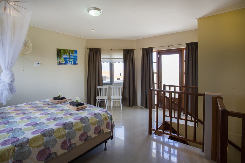 De woning omvat een woonkamer, compleet uitgeruste keuken, 3 slaapkamers waarvan de master bedroom met eigen badkamer en een logeerkamer met 2de badkamer zich op de benedenverdieping bevinden. Op de bovenverdieping is de derde slaapkamer met openslaande deuren naar het balkon waar je een geweldig uitzicht hebt op de zee. De slaapkamers zijn allen voorzien van airco.