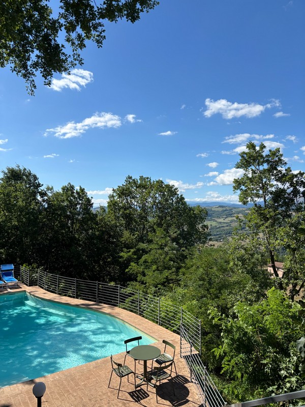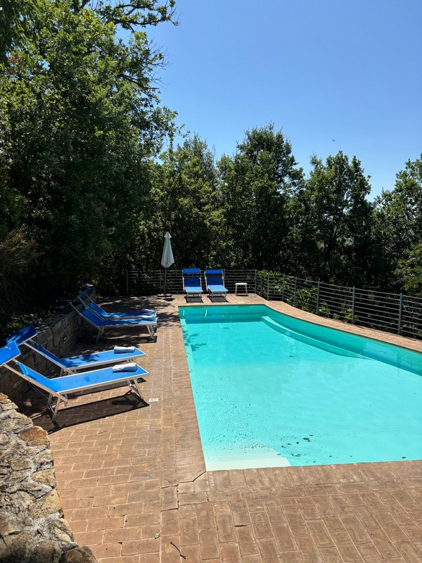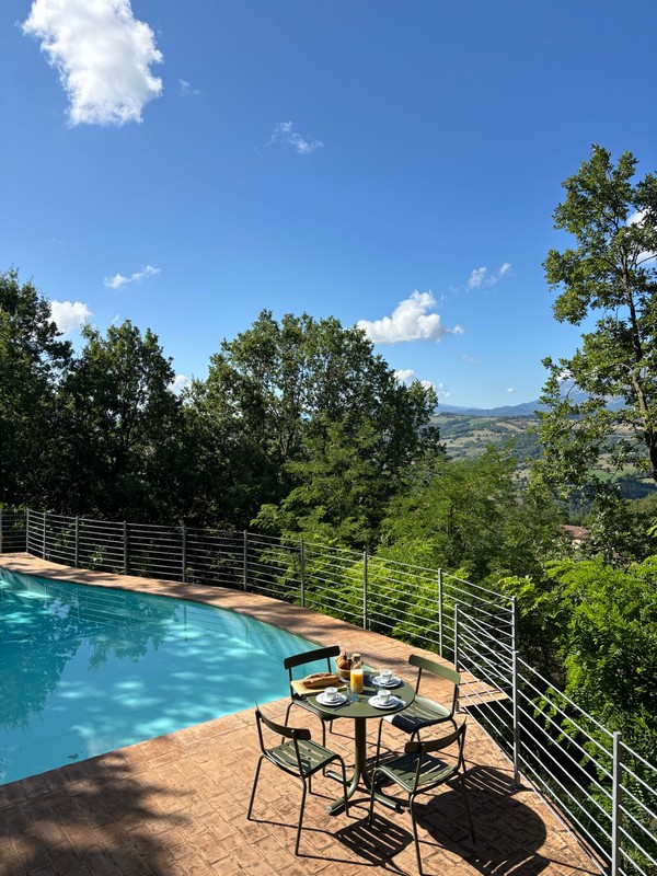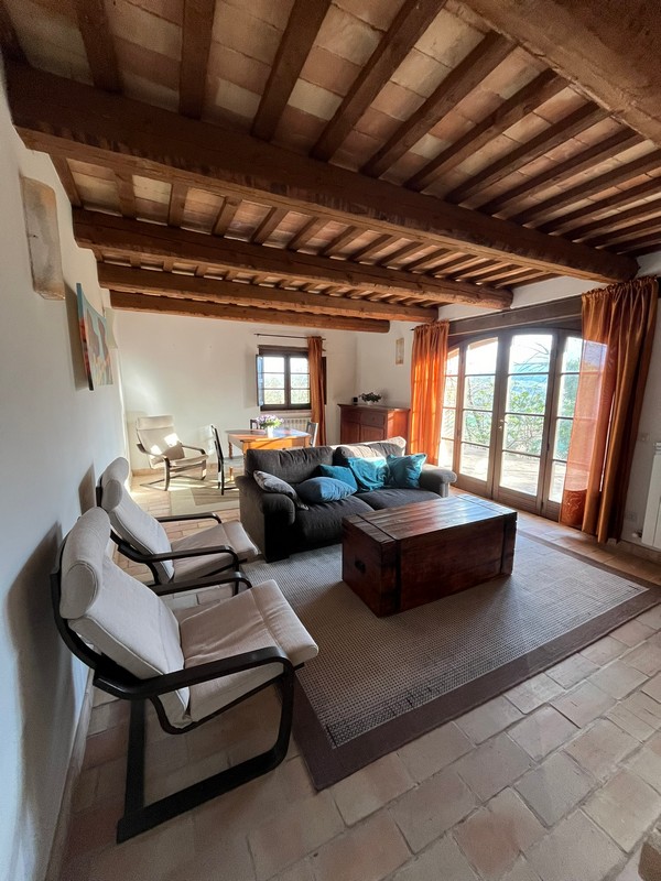Buiten is er een overdekt terras direct aan de keuken, die voorzien is van een grote eettafel en er is ook een BBQ. Vanuit de loungehoek heb je zicht op het ruime zwembad (10 x 4 meter) dat voorzien is van 6 ligbedden met parasols. Je kijkt er ook uit op de prachtige bergen om bij weg te dromen tijdens een aperitiefje.