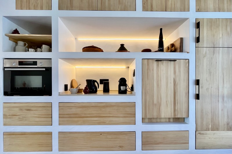- In de keuken vindt u alles om lekker te kokkerellen. De moderne keuken is in hoogte verstelbaar, van 70 tot 100 cm, en heeft een onderrijdbaar werkvlak, aanrecht en kookplaat. Er is naast een inductie kooplaat en combi-oven onder meer een grote paella pan aanwezig. Het recept voor dit makkelijk te maken gerecht vindt u in de ‘insider tips’.