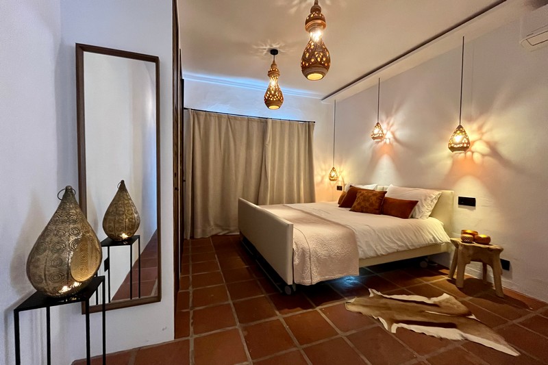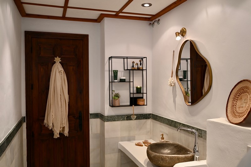 - Bij de styling en decoratie van Villa Zafarraya lieten de eigenaren zich inspireren door de Japanse ‘Wabi Sabi’ filosofie. Duurzame en pure materialen, aardse en natuurlijke kleuren. Authentieke meubelen met een verhaal.