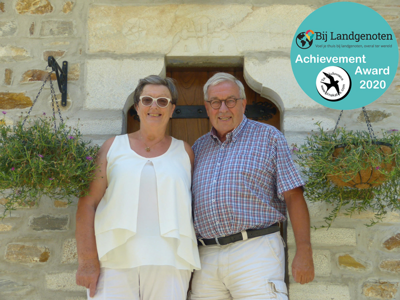 We zijn er bijzonder trots op de ‘Bij Landgenoten Achievement Award’ dit jaar te kunnen uitreiken aan Ward & Wies Renders van Ta Xelidonakia (De Zwaluwtjes), gesitueerd aan de oostzijde van het centrale Griekse vasteland. Met deze award wensen we landgenoten in the picture te zetten die hun droom om in het buitenlands toerisme actief te zijn, niet alleen waarmaakten maar ook op een hoger niveau wisten te brengen. Een score van 100% op recensiesite Tripadvisor rechtvaardigt en ondersteunt de keuze van onze redactie.
